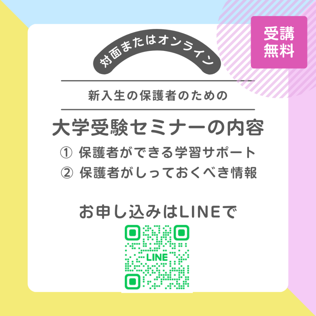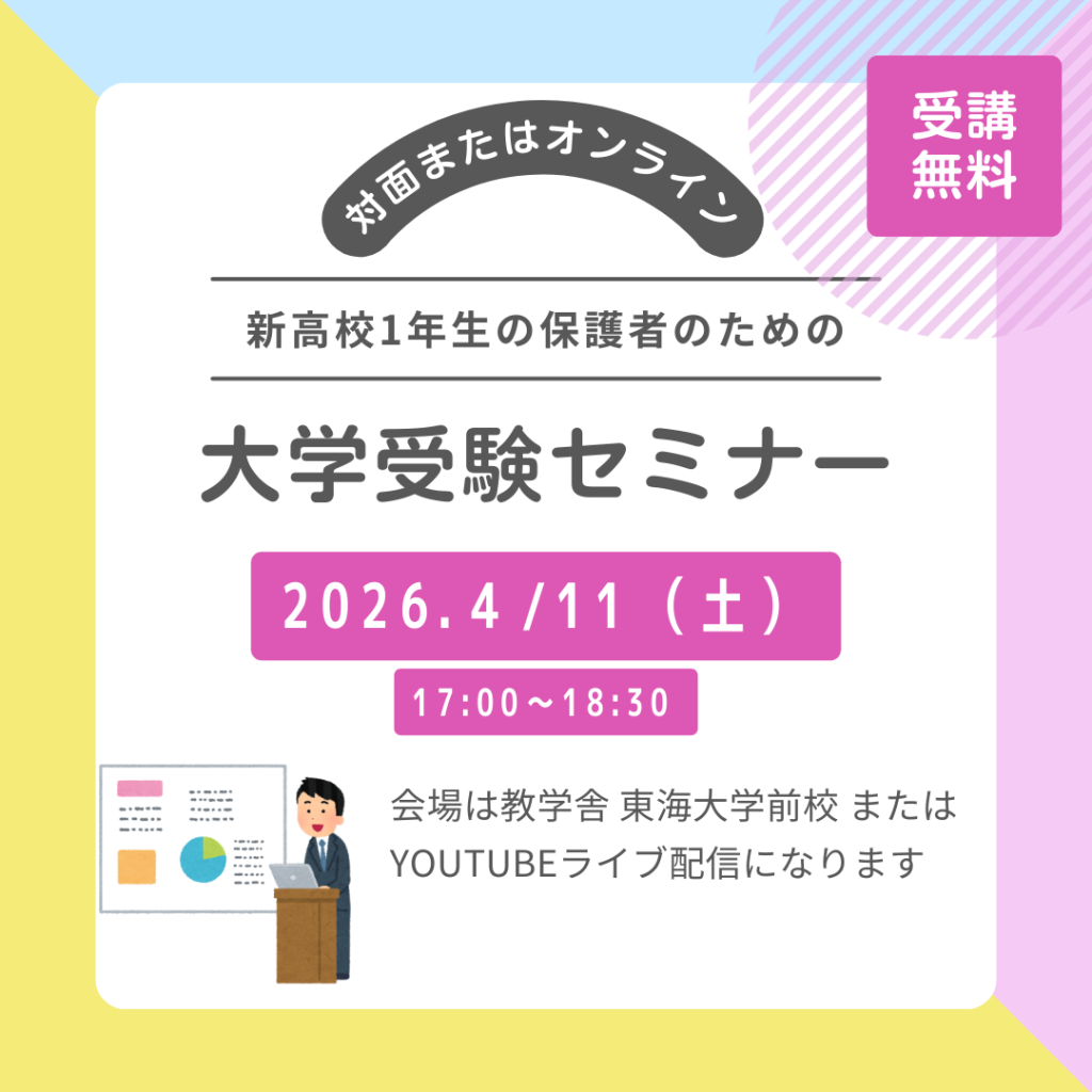 教学舎では4月11日(土)に新高校1年生の保護者対象のセミナーをおこないます。入学直後だからこそ、注意しなければならないことや、学習習慣の大切さについてお伝えいたします。